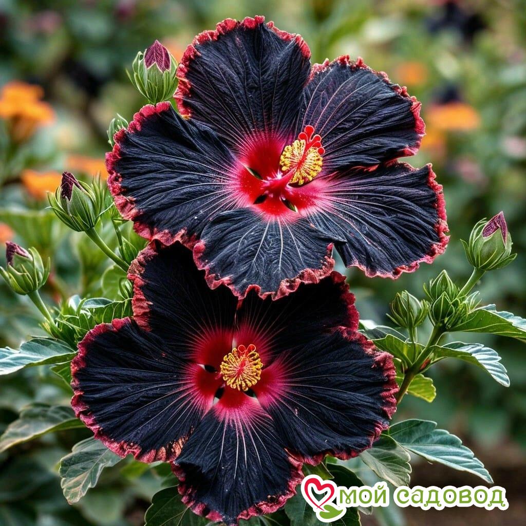 Садовый гибискус «Файер Дэнсер» — это настоящее произведение искусства, которое не оставит равнодушным ни одного ценителя прекрасного. Его крупные, почти чёрные цветки с огненно-красной каймой, словно языки пламени, притягивают взгляд и создают атмосферу загадочности и страсти. Представьте, как этот прекрасный гибискус будет смотреться в вашем саду на фоне зелени, словно таинственный цветок из сказочной страны!