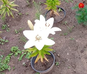 Огромный многоярусный цветок 20 см в диаметре с насыщенным сладким ароматом состоит из бесчисленных перламутровых лепестков. Фантастическая красавица будет встречать вас на парадной клумбе рядом с крыльцом, отлично впишется в пространство перед живой изгородью из хвойных или декоративных кустарников, между кустами пионов и роз. Посадка лилии: Глубина посадки лилии зависит от почвы. Если почва легкая – можно углубить на 12-13 см, что составляет 3-4 диаметра луковицы. Если же почва глинистая или тяжелая, достаточно двух диаметров, глубина лунки не более 5 см. В выкопанную ямку насыпьте слой песка, установите луковицу донышком на песок, присыпьте сверху остатками грунта, сверху замульчируйте. Уход за лилией: Пышных бутонов у лилий можно добиться, соблюдая обычные правила ухода: в первый год лилиям не нужна весенняя подкормка, удобрения вносятся разово за сезон, после цветения. Но это лишь в том случае, если перед посадкой вносилось удобрение. Перед началом цветения высокорослые сорта рекомендуется подвязать. После цветения засохшие бутоны удаляют. Полив умеренный: лучше не долить, чем перелить. Если цветок начал чахнуть и имеются подозрения на перелив – смешайте по столовой ложке речного песка и древесной золы, высыпьте под цветок и не поливайте ближайшую неделю. Полив лилии важно проводить под корень, старайтесь исключить попадание воды на листья, это провоцирует ожоги на солнце и распространение грибковых заболеваний.